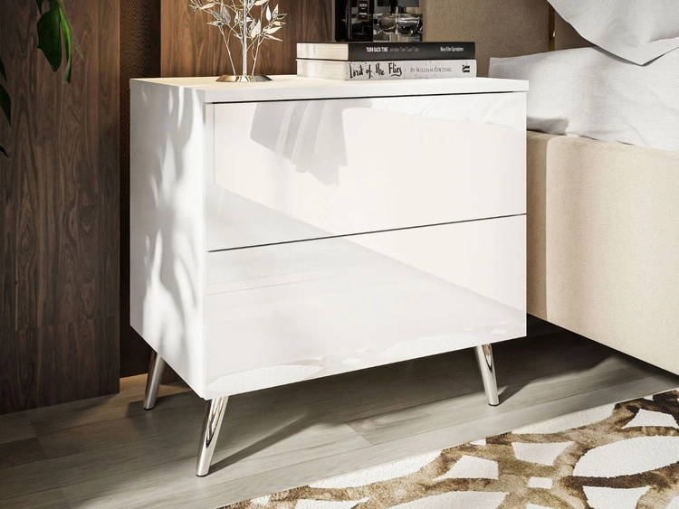 Anzahl der Produkte: 119Nachttisch mit Schubladen auf Silbernen Metallbeinen Nuveo Weiß Hochglanz