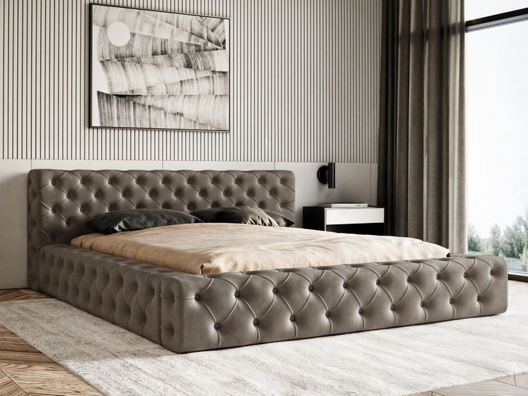 Polsterbett mit Bettkasten und Lattenrost 140x200 Esma Grau