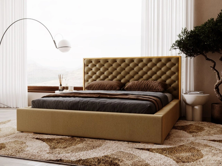 Polsterbett mit Bettkasten und Lattenrost 200x200 Bonito Braun