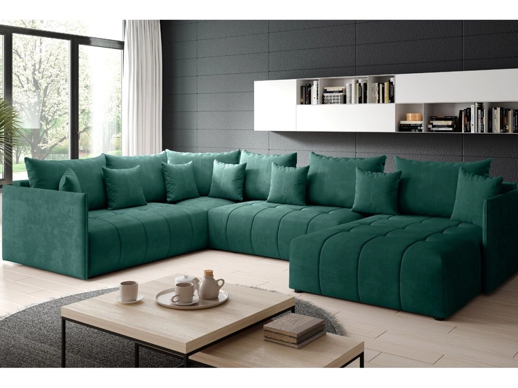 Wohnlandschaft mit Schlaffunktion und Bettkasten Decor U Grün