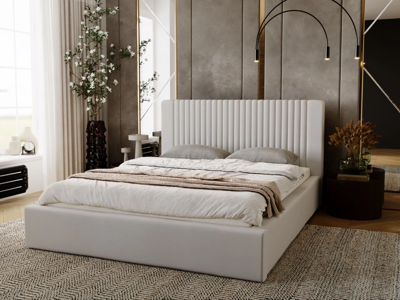 Polsterbett mit Bettkasten und Lattenrost 200x200 Malmo Hellgrau