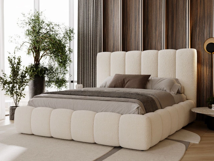 Polsterbett ohne Bettkasten mit Lattenrost 160x200 Cloud aus Bouclé-Stoff Beige