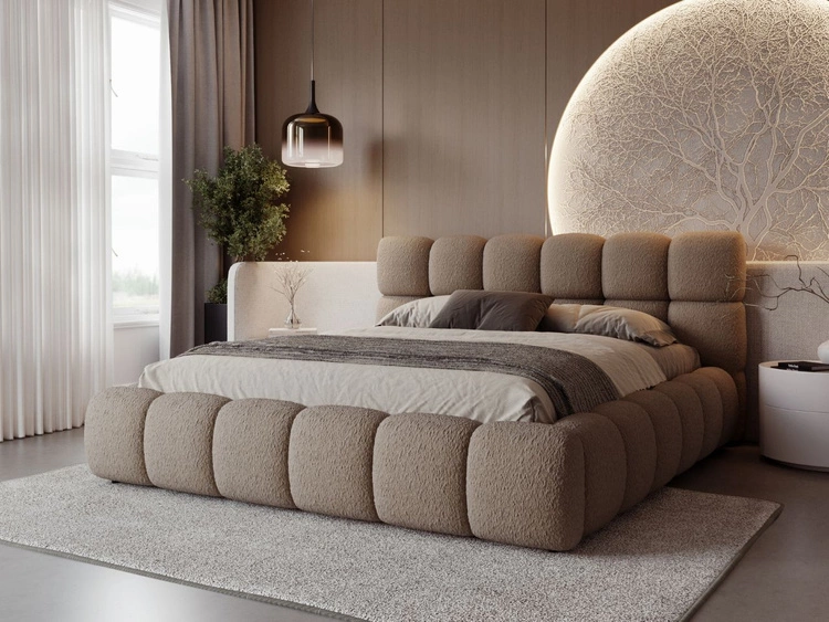 Polsterbett mit Bettkasten und Lattenrost 160x200 Cloud Low Bouclé-Stoff Braun