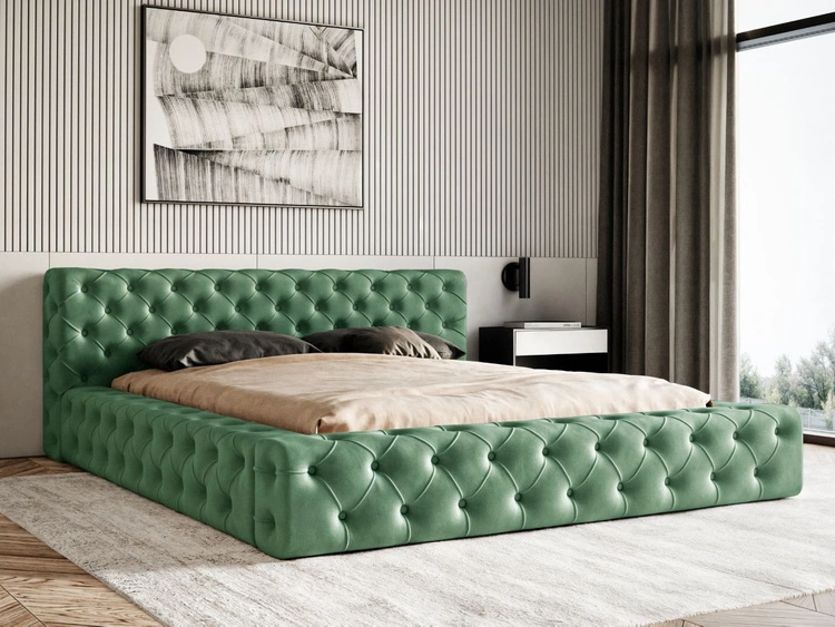 Polsterbett mit Bettkasten und Lattenrost 160x200 Palini Grün