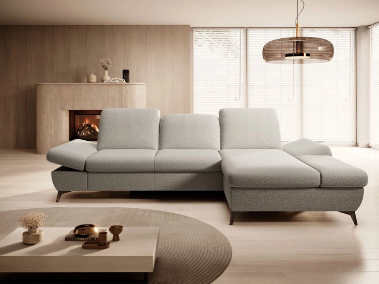 Ecksofa L-Form Links mit Schlaffunktion und Bettkasten Limon Hellgrau