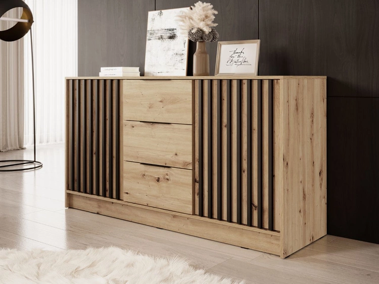 Kommode mit Türen und Schubladen Astro Schwarz, Artisan Eiche