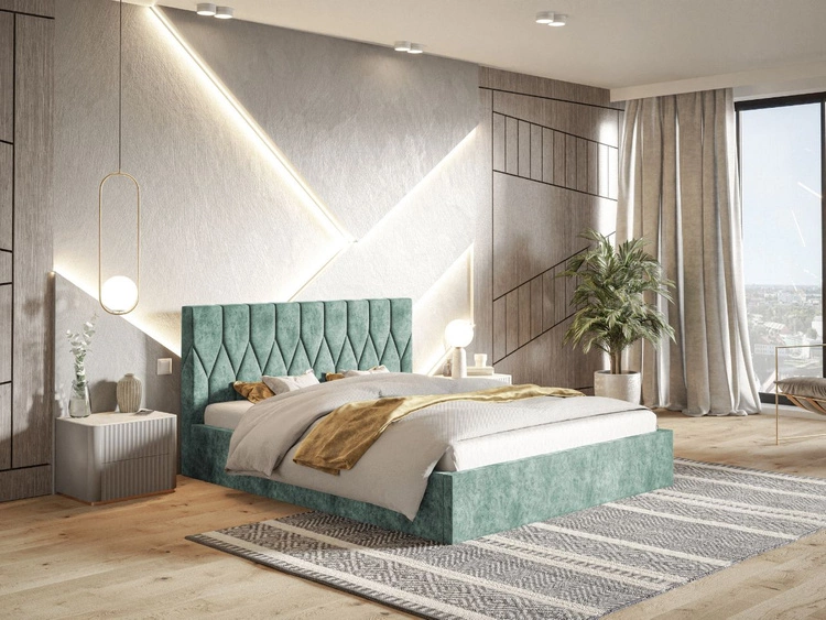 Polsterbett mit Bettkasten und Lattenrost 160x200 Salento Grün