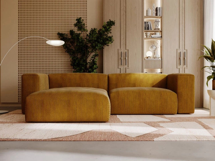 Ecksofa L-Form Links Moderne Cord Ecksofa Landi Honigfarben