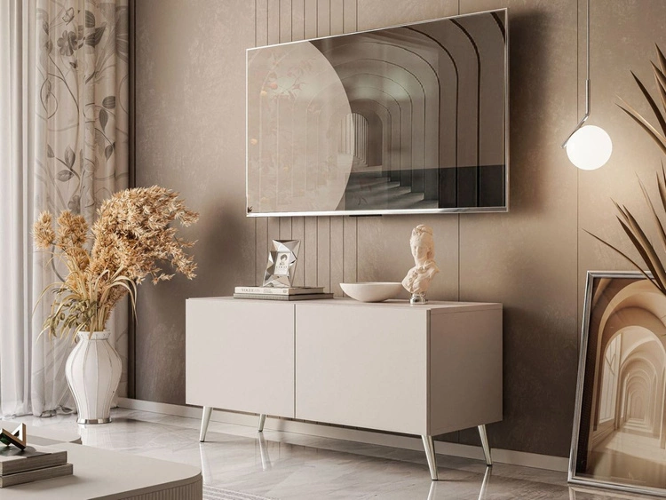 TV-Lowboard mit Türen auf Silbernen Metallbeinen 100 cm Nodoo Kaschmir