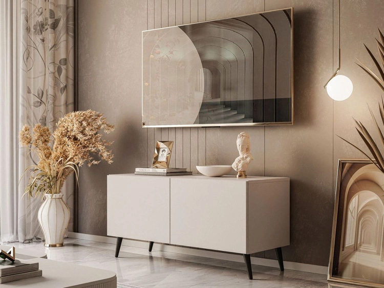 TV-Lowboard mit Türen auf Schwarzen Metallbeinen 100 cm Nodoo Kaschmir
