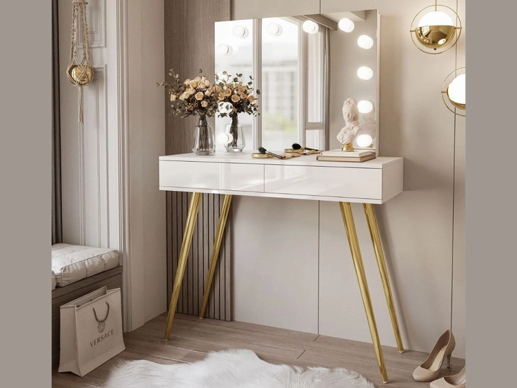 Anzahl der Produkte: 668Schminktisch im Glamour-Stil mit Schubladen, Spiegel und LED-Beleuchtung Olivine Elite Weiß Hochglanz