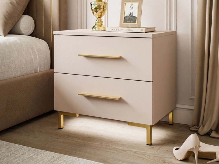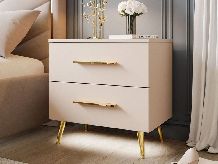 Nachttisch mit zwei Schubladen auf Goldenen Beinen Nuveo Kaschmir