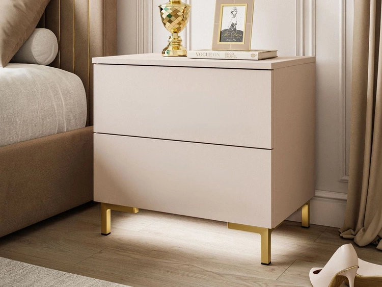 Nachttisch mit zwei Schubladen auf Goldenen Metallbeinen Nuveo Kaschmir