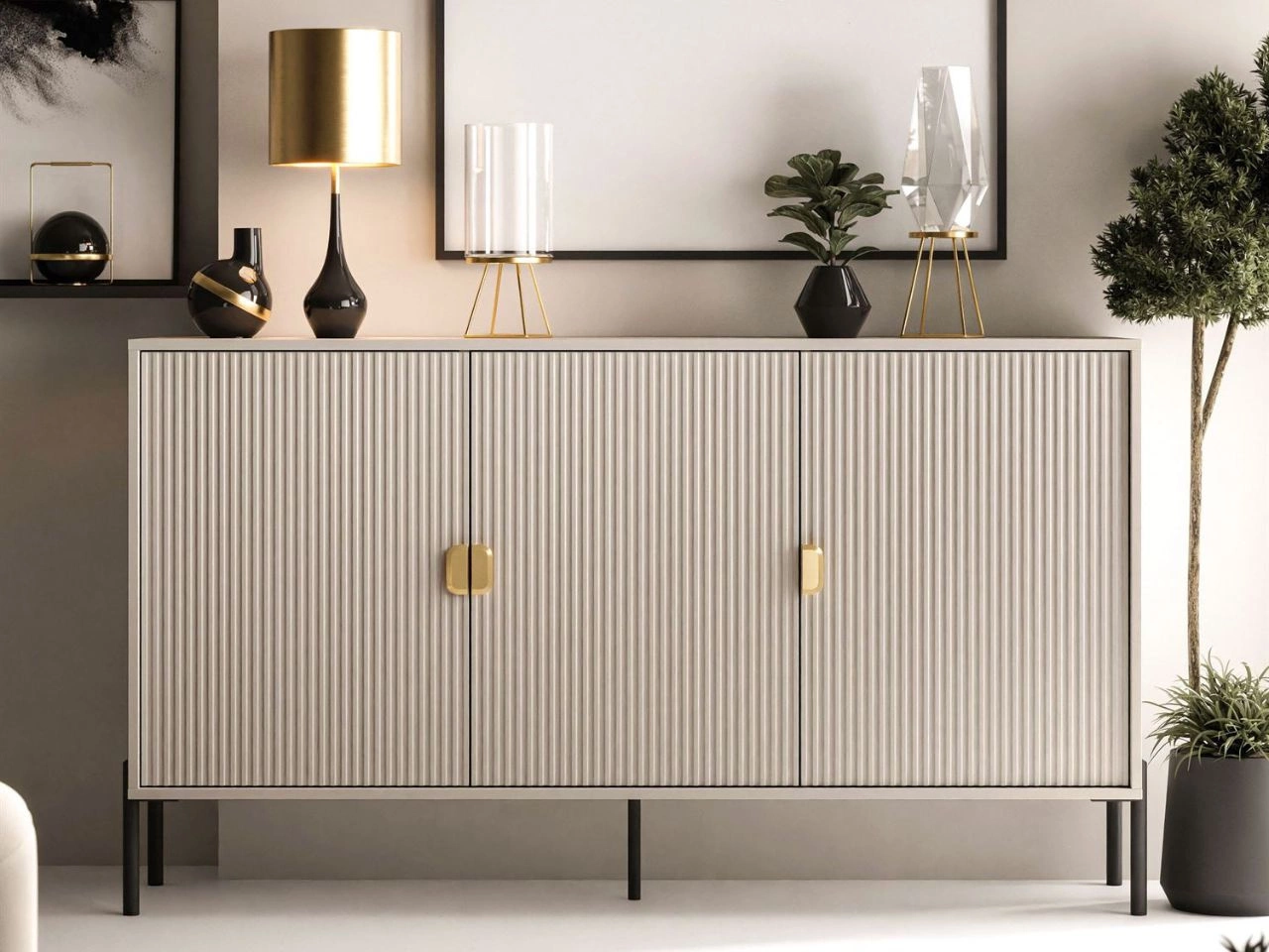 Anzahl der Produkte: 668Kommode dreitürig breit mit Goldgriffen Orlean Kaschmir Matt