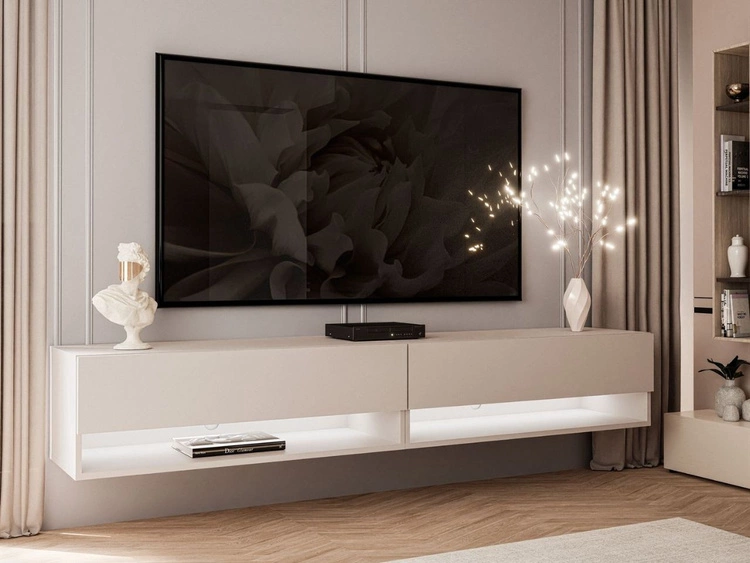 Hänge TV-Schrank 180 cm für Wohnzimmer mit LED-Beleuchtung Aurelie Kaschmir matt