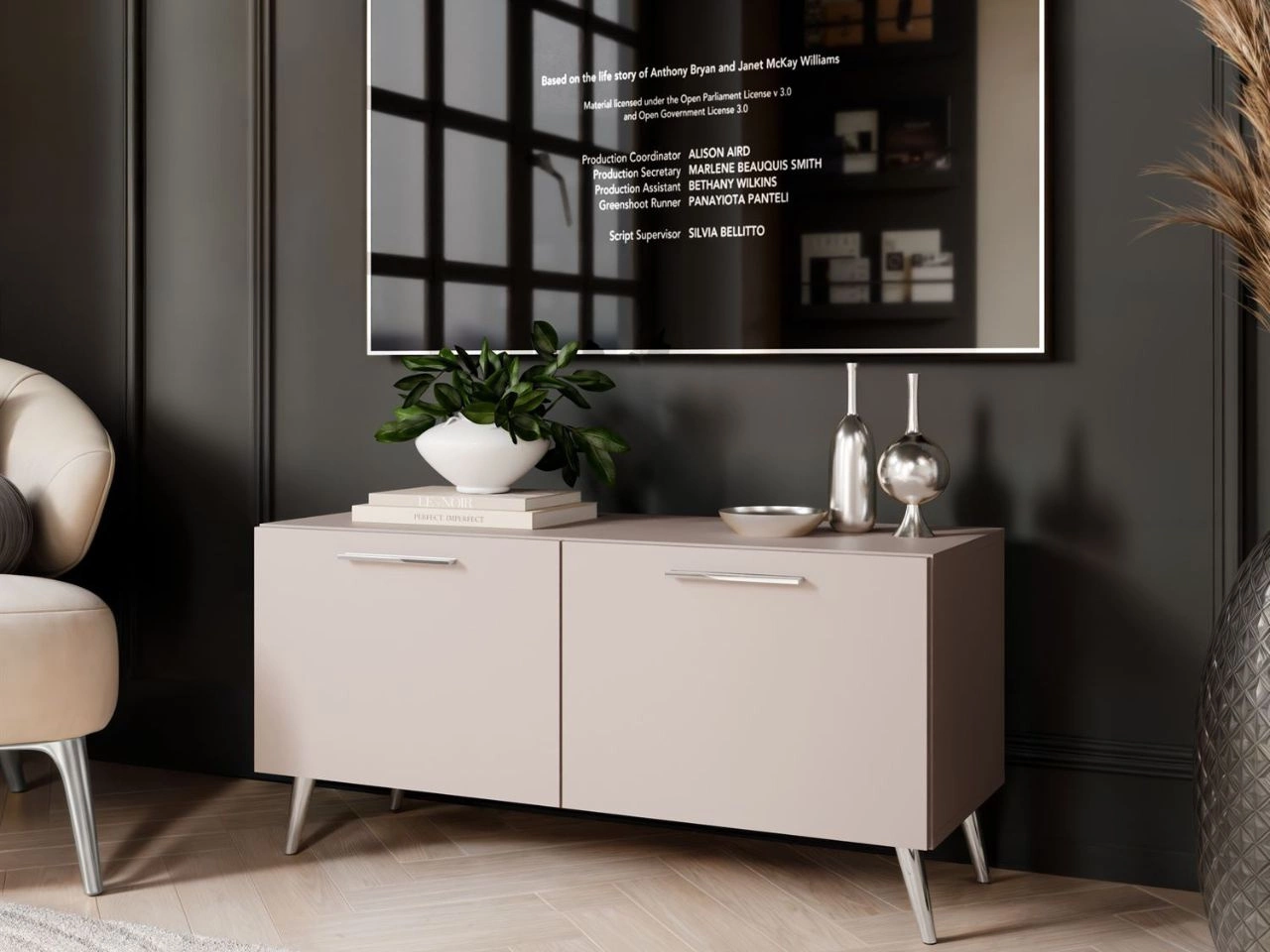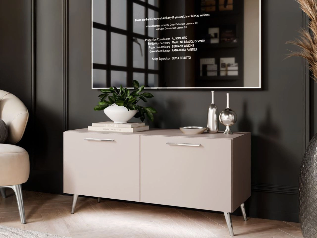 TV-Lowboard mit Türen und Griffen auf Silbernen Metallbeinen 100 cm Noaé Kaschmir
