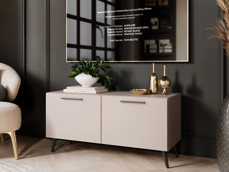 TV-Lowboard mit Türen auf Schwarzen Metallbeinen 100 cm Noaé Kaschmir