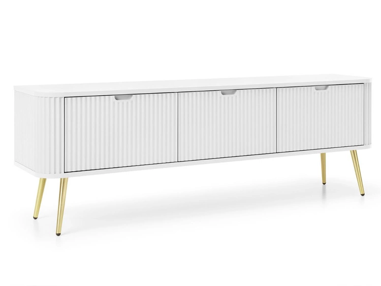 TV-Lowboard mit Türen 175 cm Diolo Weiß mit geriffelter Vorderseite auf goldenen Beinen
