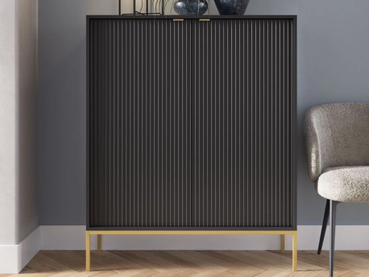 Kommode mit Türen Amber Schwarz, Gold Frame