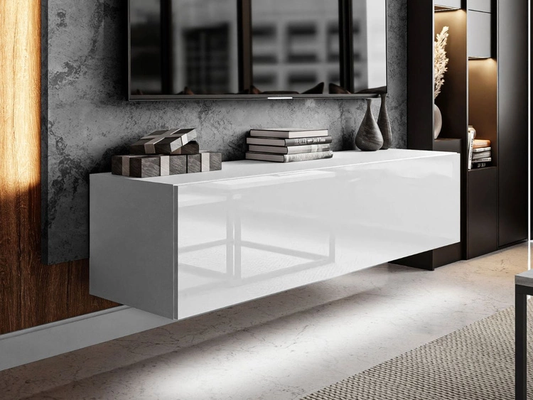 TV-Lowboard mit Türen und Aufsatz 150 cm Nodoo Weiß Hochglanz