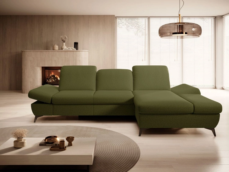 Ecksofa L-Form Rechts mit Schlaffunktion und Bettkasten Hannover Dunkelgrün
