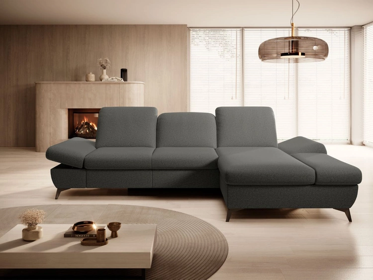 Ecksofa L-Form Rechts mit Schlaffunktion und Bettkasten Limon Grau