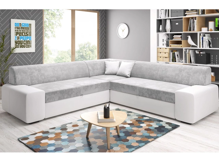 Ecksofa L-Form Rechts mit Schlaffunktion und Bettkasten Fresto Maxi Grau, Weiß