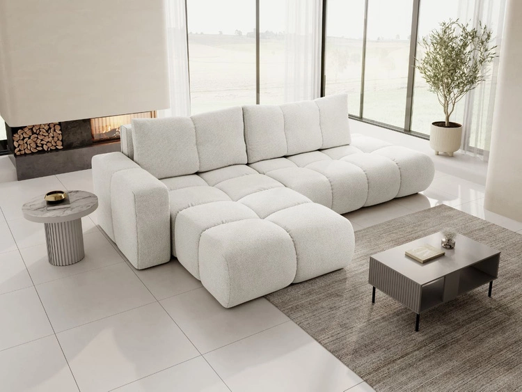 Ecksofa L-Form Rechts mit Schlaffunktion und Bettkasten Sile L Beige
