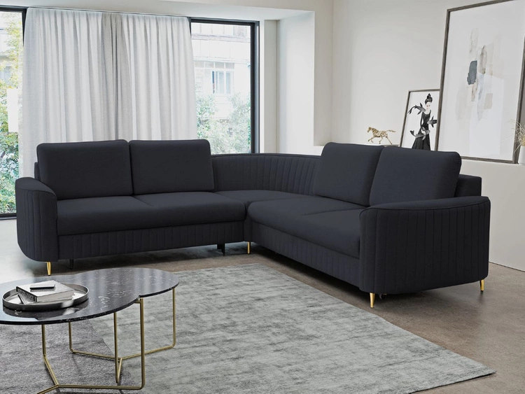 Ecksofa L-Form mit Schlaffunktion und Bettkasten Scala Schwarz