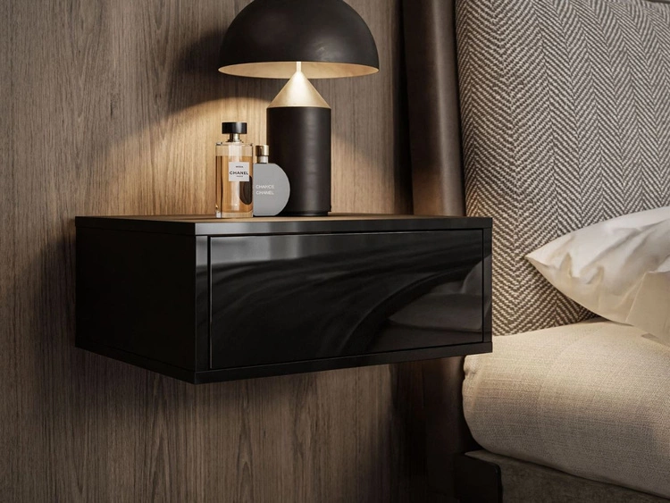 Hängender Nachttisch mit Schublade Brisa Schwarz Hochglanz