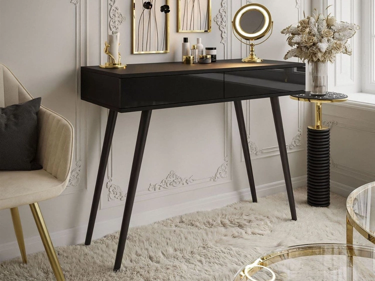 Konsolentisch mit Schubladen und schwarzen Beinen Olivine Schwarz Hochglanz