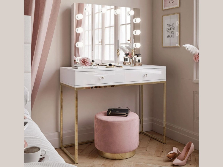 Schminktisch Glamour mit Schubladen, Spiegel und LED-Beleuchtung Brisa Weiß Hochglanz