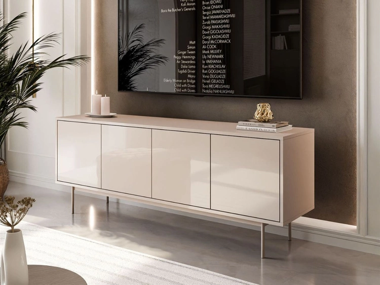 TV-Lowboard im Glamour-Stil mit Türen auf kaschmirfarbenen Füßen Vivance, Kaschmir Hochglanz