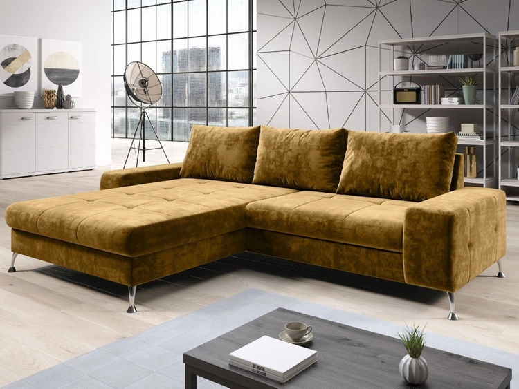 Ecksofa L-Form Links mit Schlaffunktion und Bettkasten Tonny Gelb