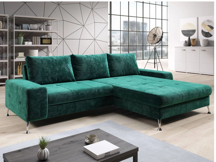 Anzahl der Produkte: 4586Ecksofa L-Form Rechts mit Schlaffunktion und Bettkasten Tonny Grün