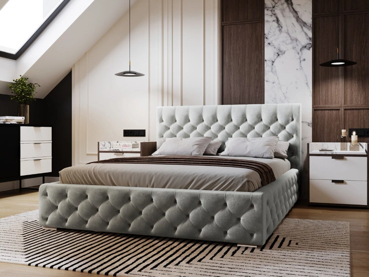 Polsterbett mit Bettkasten und Lattenrost 160x200 Astra Hellgrau
