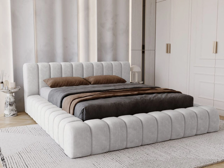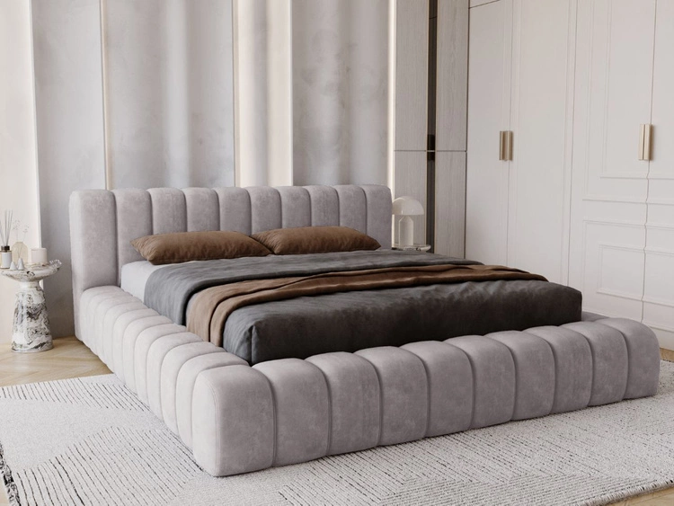 Polsterbett mit Bettkasten und Lattenrost 140x200 Italia Hellgrau