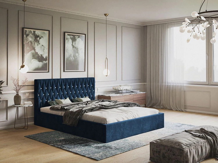 Łóżko tapicerowane z pojemnikiem i stelażem 180x200 Gaja Ciemnoniebieskie