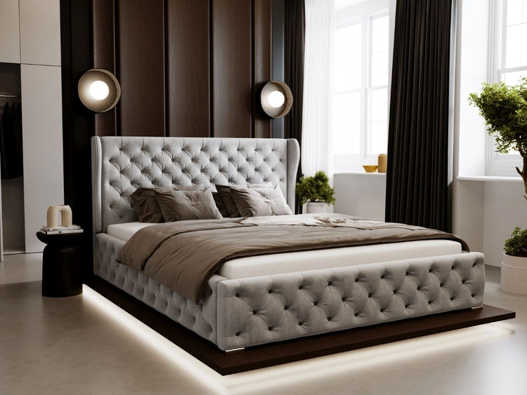 Polsterbett mit Bettkasten und Lattenrost 200x200 Kingston Hellgrau