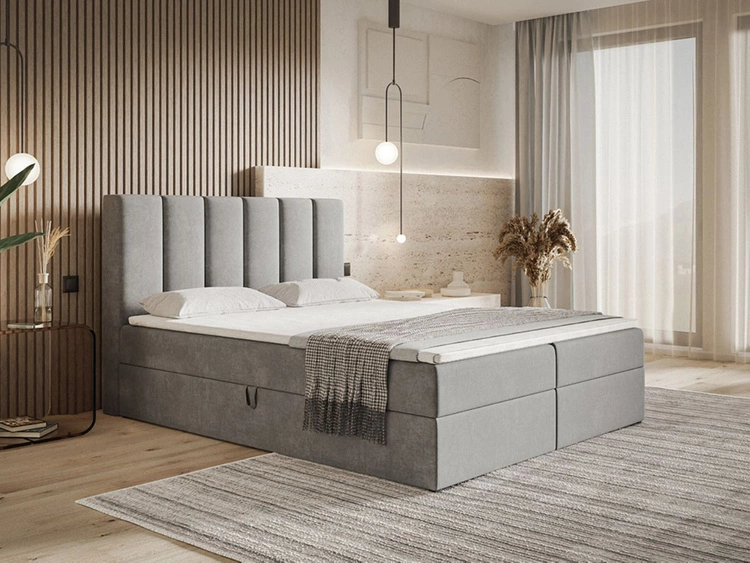 Boxspringbett mit Bettkasten 160x200 Neria Lux Hellgrau