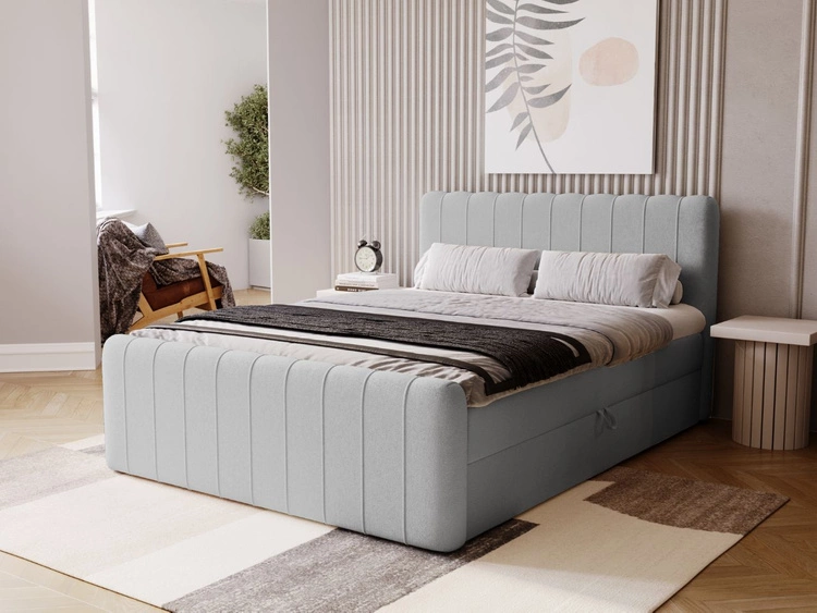 Polsterbett mit Bettkasten und Lattenrost 140x200 Bubble Hellgrau