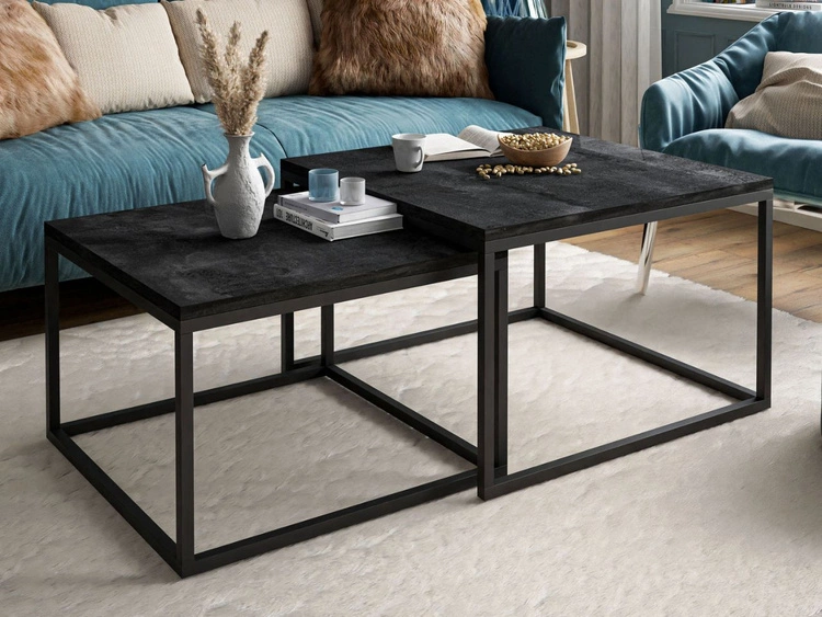 Couchtisch auf schwarzem Metallrahmen mit schwarzez Platte Asumi 40x46