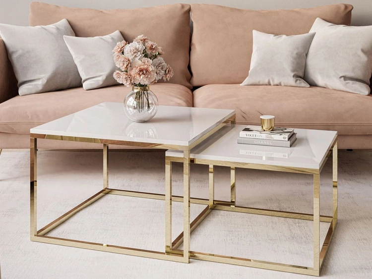 Anzahl der Produkte: 13Couchtisch auf goldenem Gestell Asumi Weiß Hochglanz 36x42