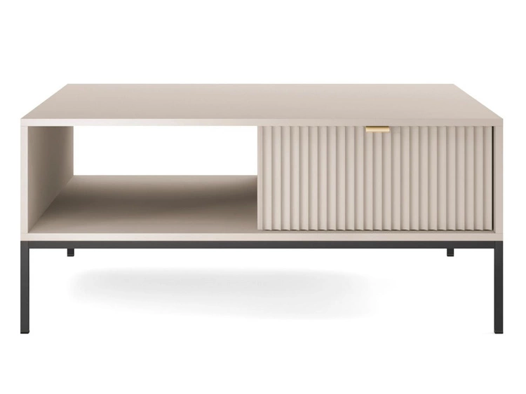 Couchtisch mit Stauraum Amber Kaschmir auf schwarzen Beinen