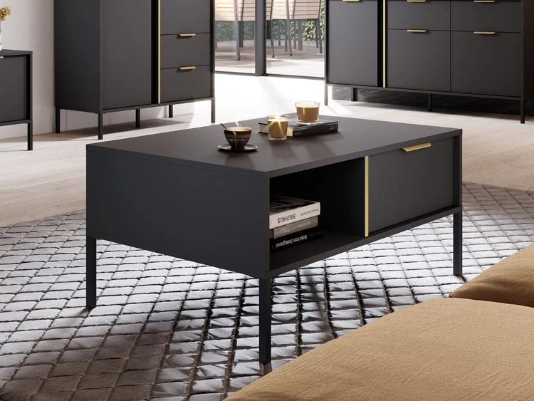 Couchtisch auf goldenen Beinen im Glamour-Stil Lunelie Schwarz Hochglanz