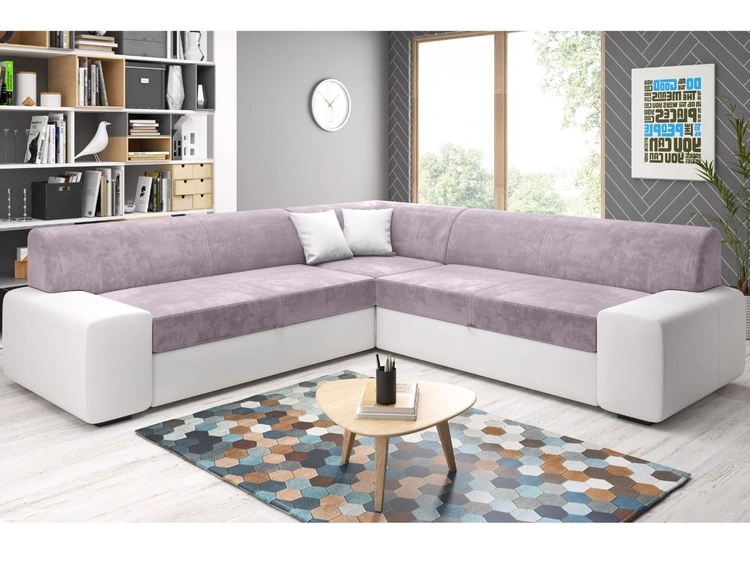 Ecksofa L-Form Rechts mit Schlaffunktion und Bettkasten Fresto Maxi Rosa, Weiß