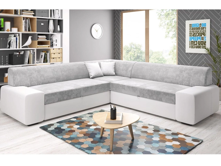 Ecksofa L-Form Links mit Schlaffunktion und Bettkasten Fresto Maxi Grau, Weiß