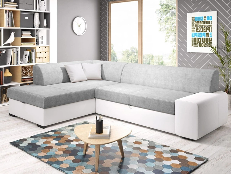 Ecksofa L-Form Links mit Schlaffunktion und Bettkasten Fresto Hellgrau Weiß