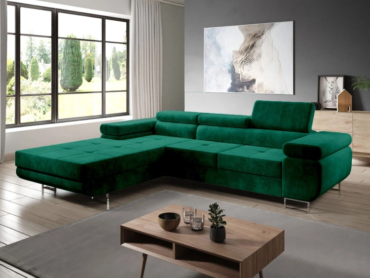 Ecksofa L-Form Links mit Schlaffunktion und Bettkasten Tonny Grün