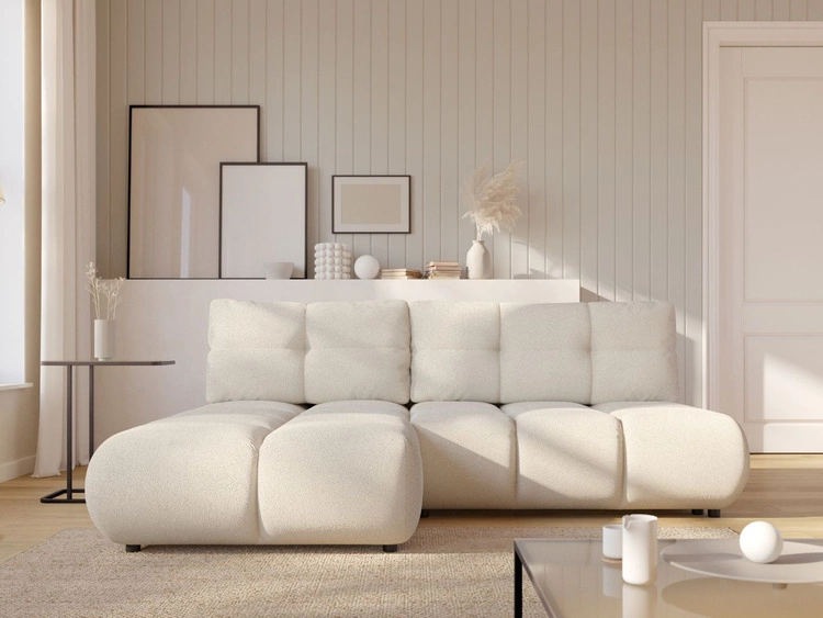 Ecksofa mit Schlaffunktion und Bettkasten Links Adoro Creme